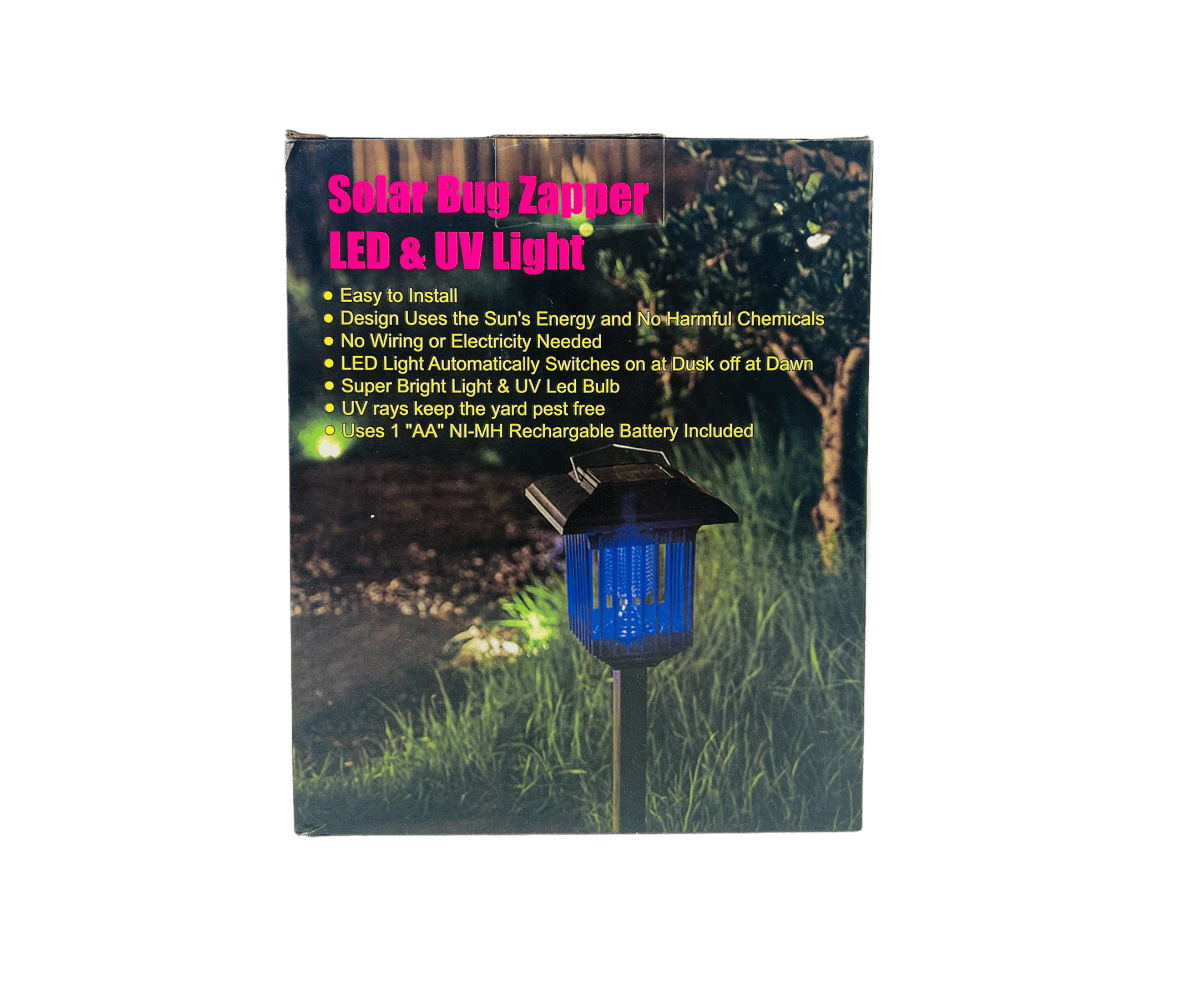 Kokusuz, çevreyi kirletmeyen böcek çekici ışık. LED'ler gün batımında otomatik olarak yanar ve gün doğumunda söner.