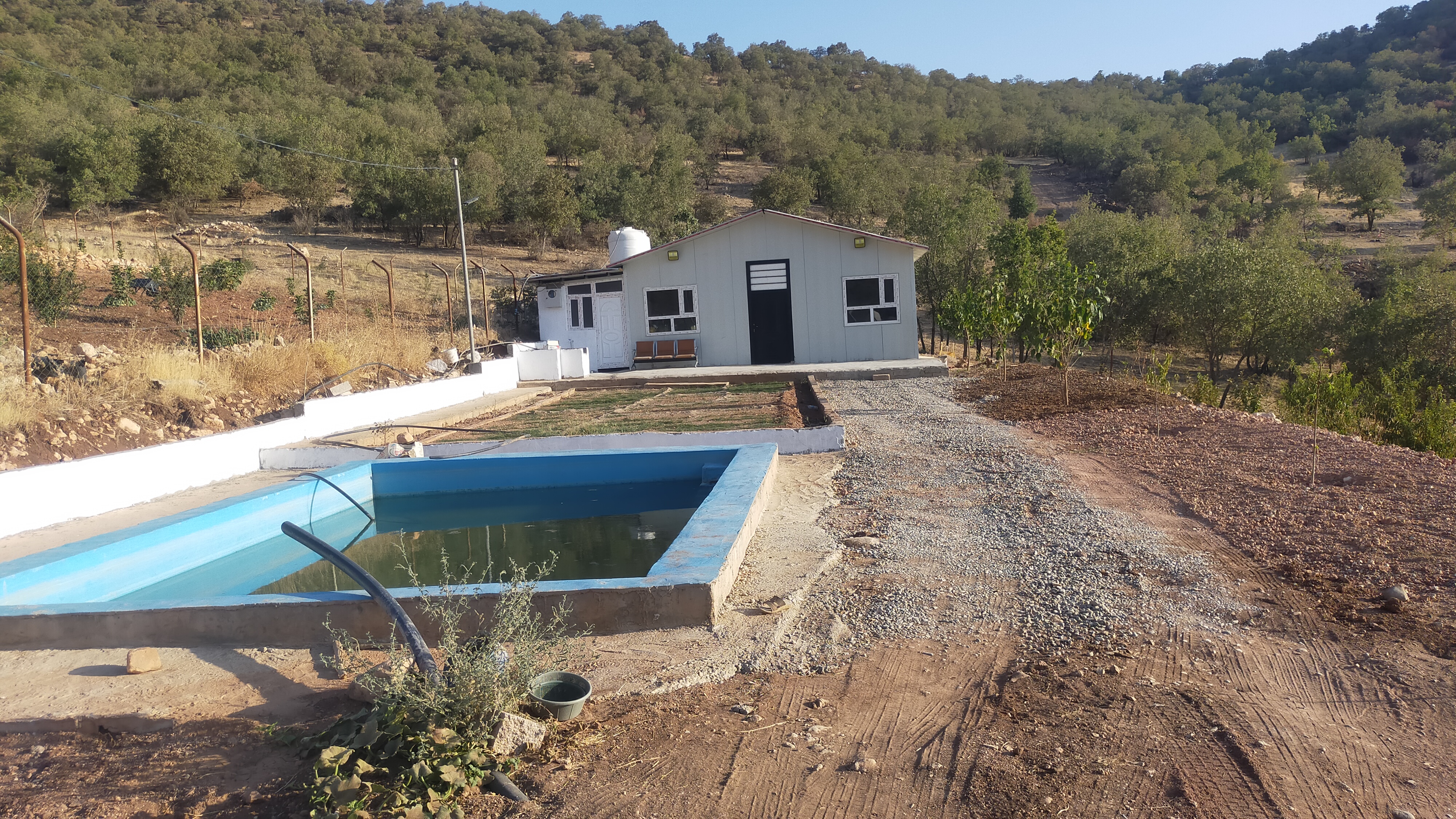 Dohuk Valiliği, Jaman köyünde, yola 15 dakika mesafede, 2000 metre mesafede, 250 çeşit farklı ağaç, 3 yaşında, 5*7 metrekare, 8*8 metrekare ev tasarımlı kulübe ve 5*10 metre bahçeli satılık çiftlik.